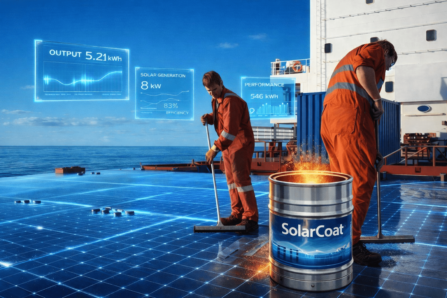 La pintura fotovoltaica propone algo más profundo: dejar de ocupar espacio útil para instalar generación y comenzar a incorporar esa función directamente sobre la superficie del buque.